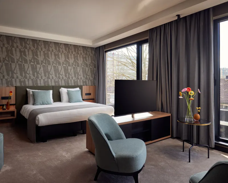 Das Superior-Zimmer im Hotel Gorinchem bietet alles, was Sie für ein luxuriöses Wochenende in Gorinchem benötigen. Nehmen Sie Platz in der geräumigen Whirlpool-Badewanne und genießen Sie einen entspannten Abend oder entscheiden Sie sich für eine warme Dusche mit Sunshower. Darüber hinaus verfügt das Superior-Zimmer über eine Klimaanlage, eine geräumige Sitzecke mit Fernseher und eine Nespresso-Kaffeemaschine. Nach einem entspannten Abend lassen Sie den Tag im bequemen Kingsize-Bett ausklingen. Schlafen Sie gut!